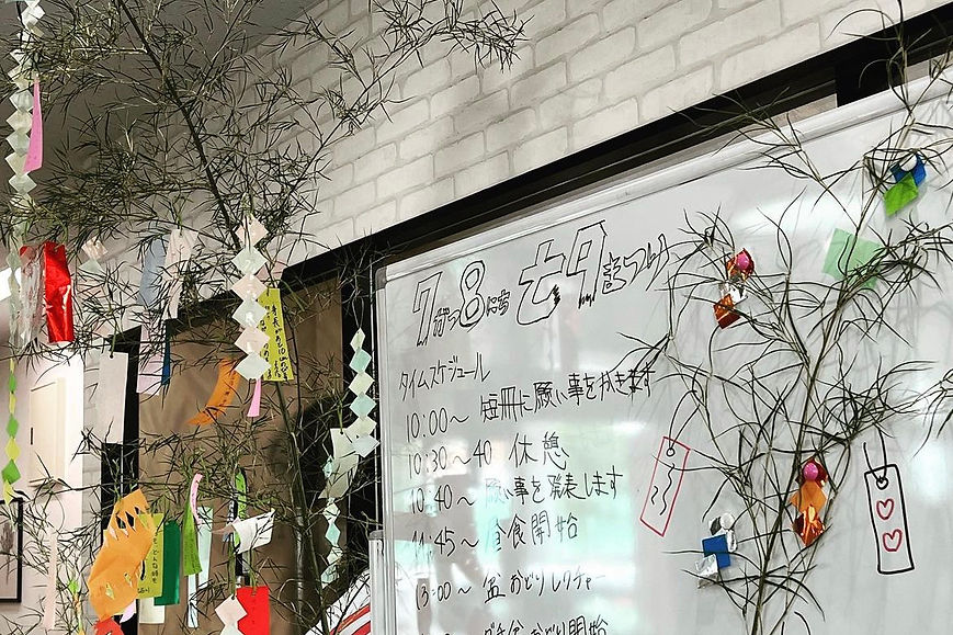 7月8日はイベントDAYオモロワークスB七夕祭り🎋でした。豪華なお祭りメニューに、射的、盆踊り(ダンシングヒーロー)願い事を書く&皆さんの前で発表!と盛りだくさんの内容で抱腹絶倒な素晴らしい一日になりました来てくださった利用者さんは全員笑顔で帰路につかれました😄本当に嬉しく、そして楽しいイベントでした。🎋8月はどんなことをしましょうかね🍉